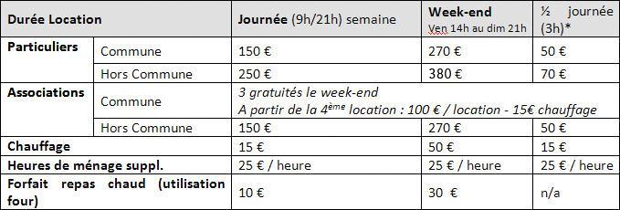 LOCATION SALLE DES FÊTES (au 1er janvier 2017)